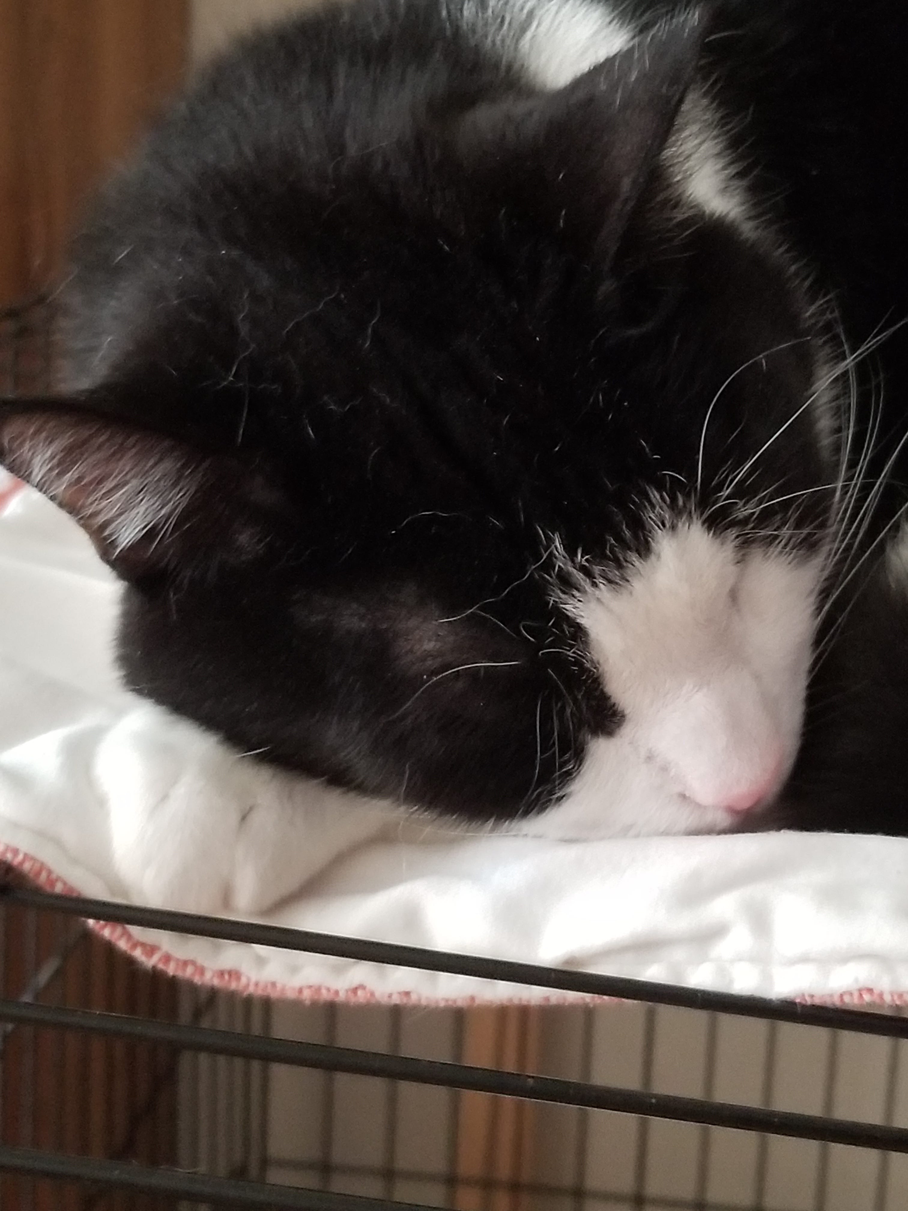 But I had to shelve that thought because Chevy (one half of The Tuxie Twosome) had suddenly decided to take a bath in the water dish again; this meant that the water dish had to be dumped, washed, and refilled— after all, we pawrents of indoor cats all know where his paws have been.